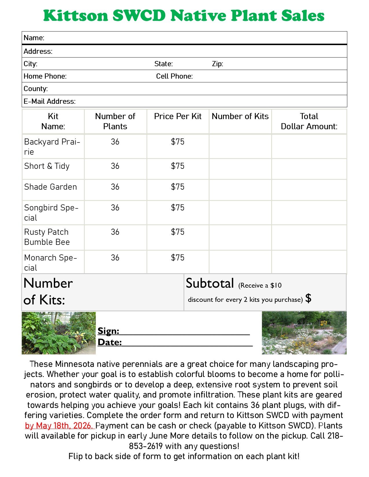 If interested in ordering you can complete the order form above and return to the Kittson SWCD along with payment (cash or check-payable to Kittson SWCD) by May 18th, 2026. For questions or assistance in filling out the form please reach out to Sky at 218-853-2619.